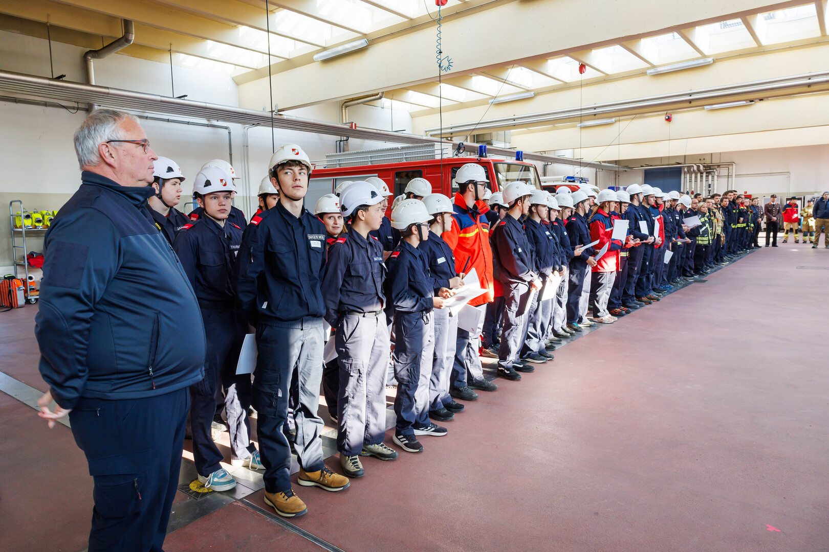 Bei der Siegerehrung, bei der alle 49 Jugendlichen das höchste Leistungsabzeichen entgegennehmen konnten, waren zahlreiche Ehrengäste anwesend. Der Landesjugendreferent aus Vorarlberg Oliver Berger überreichte gemeinsam mit Landeshauptmann Markus Wallner und Landesfeuerwehrinspektor Herbert Österle die goldenen Abzeichen. Die Bezirksfeuerwehrinspektoren und zahlreiche Kommandanten gratulierten den Jugendlichen zu ihrem Erfolg.![]()