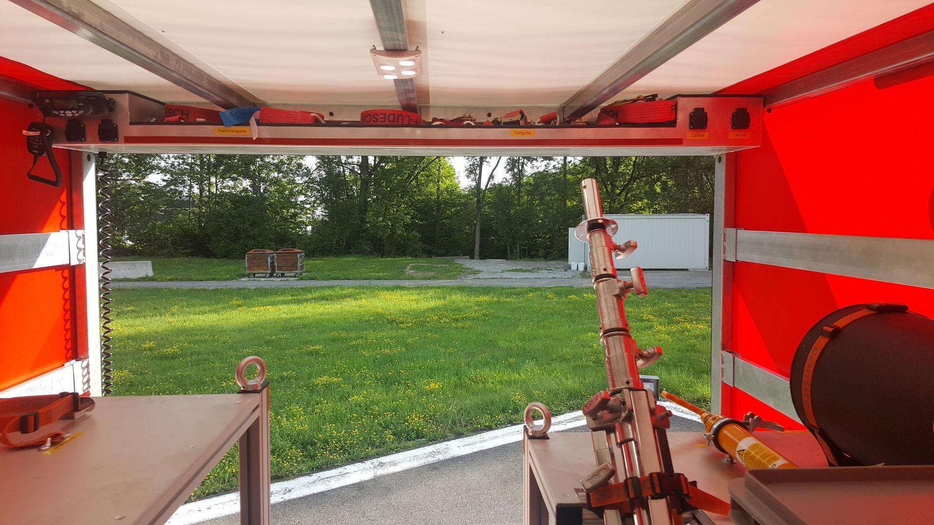 Als Beleuchtungsstützpunkt hat die Feuerwehr Ludesch sehr viel Ausrüstung, die zusammen transportiert werden muss. Um bei Einsätzen die Einsatz- und Beleuchtungsgeräte befördern zu können, haben sie für diesen Zweck ein Versorgungsfahrzeug mit Ladebordwand angeschafft. Als Fahrgestell dient ein Mercedes Sprinter mit einem Pritschenaufbau. Mit der Hebebühne ist es möglich, Einsatzmittel einfach und schnell auszuladen und neue Ausrüstung auf das Fahrzeug zu hieven. Die Rollcontainer werden mit dem Versorgungsfahrzeug zur Einsatzstelle gebracht und dort auf Rollen zu den benötigten Punkten gefahren. Die Bedienung solch eines Containers ist mit nur einer Person möglich, wodurch die restlichen Einsatzkräfte andere Aufgaben zugeteilt bekommen können.